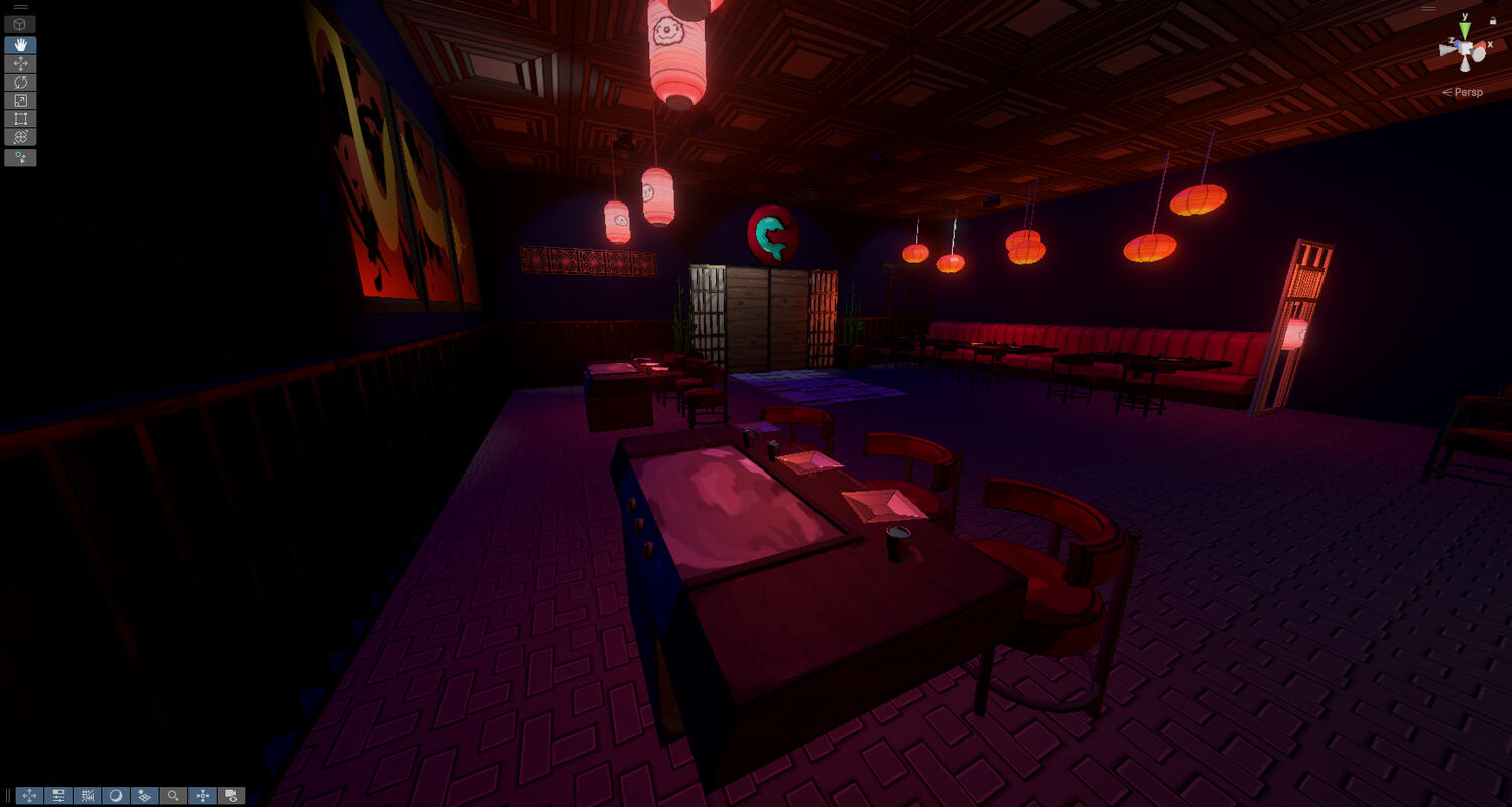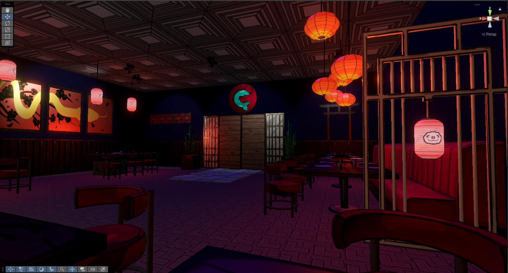 My responsibilities were to create a cozy Japanese inspired restaurant as well as satisfying eating vfx for the customers.