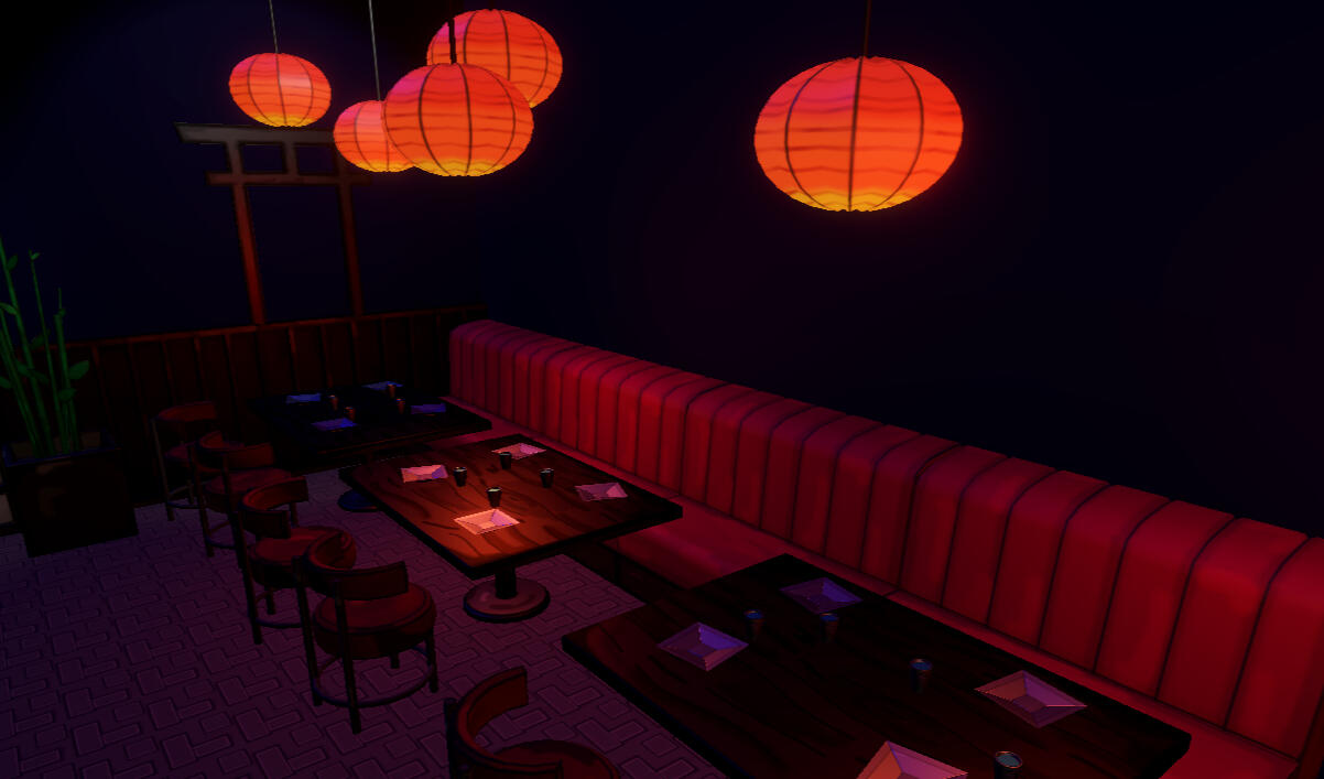 My responsibilities were to create a cozy Japanese inspired restaurant as well as satisfying eating vfx for the customers.